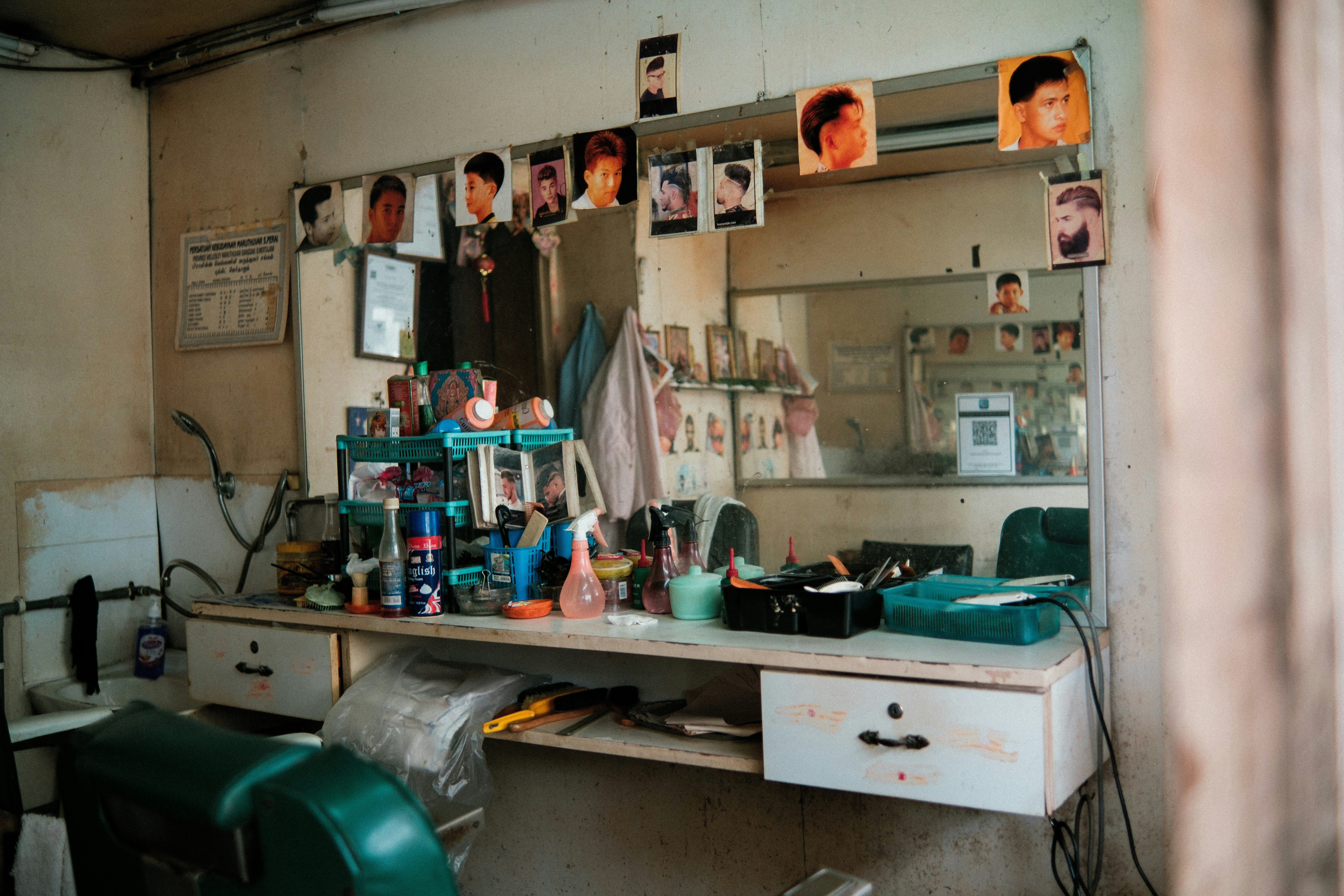 a black and white photo of a barber shop